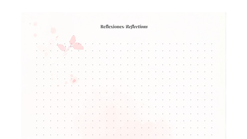 Un diario bilingüe de reflexión inspirado en la acuarela y el lenguaje consciente. Incluye páginas imprimibles para el autocuidado, la escritura reflexiva y la atención diaria en español e inglés. A bilingual reflection journal inspired by watercolor and mindful language. Includes printable pages for self-care, journaling, and everyday mindfulness in Spanish and English.